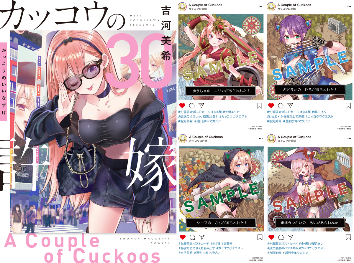 2025年11月17日(月)に発売される『カッコウの許嫁』30巻を含む、『カッコウの許嫁』単行本(1~30巻)を特典配布店舗で購入していただいた方に、イラストカードをプレゼントいたします!