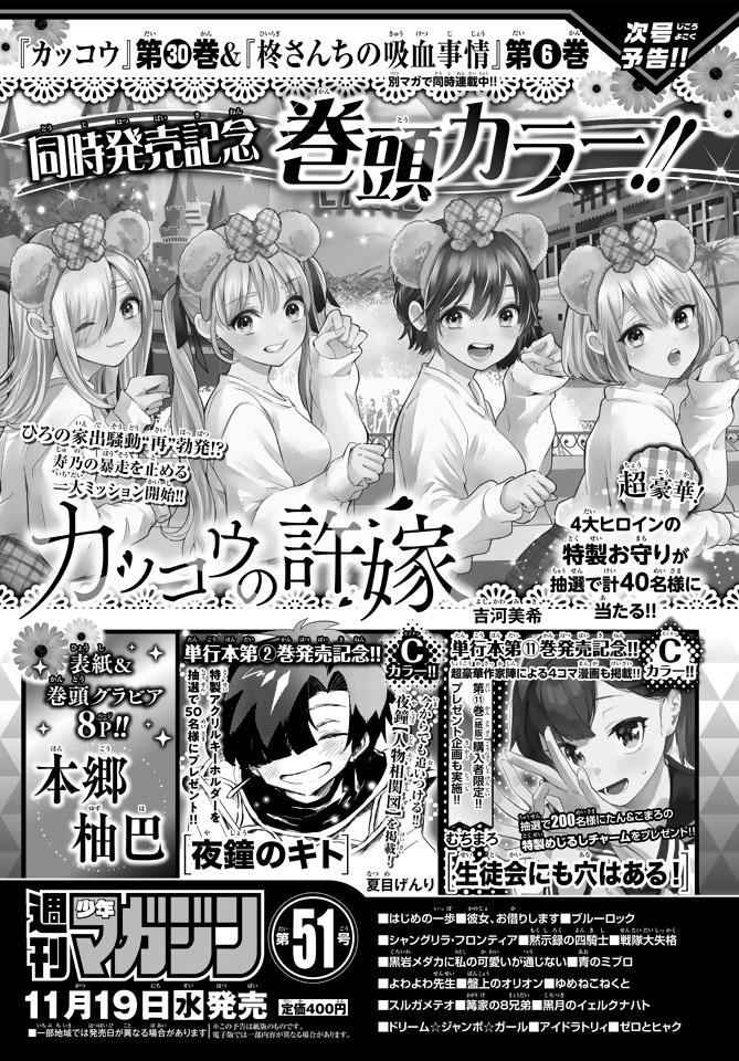 ※『あひるの空』は作者体調不良のため、『戦隊大失格』、『ガチアクタ』、『盤上のオリオン』、『ゆめねこねくと』、『篝家の8兄弟』、『黒月のイェルクナハト』は作者取材のため休載となります。ご了承ください。